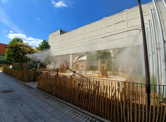 Dans le cadre de l’adaptation des villes aux fortes chaleurs, l’utilisation de brumisateurs se démocratise dans les espaces publics. S’intégrant au paysage urbain, ces aménagements permettent à la population et notamment aux plus vulnérables de se rafraîchir, en abaissant la température de l’air ainsi que la température ressentie, par la diffusion de fines gouttelettes d’eau sous forme de brume diffusées généralement par jet à haute pression.