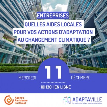 Gestionnaires privés, propriétaires fonciers, bailleurs sociaux, entreprises… les acteurs économiques ont un grand rôle à jouer dans l’adaptation des villes denses aux impacts du changement climatique. Ce webinaire, organisé par l’Agence Parisienne du Climat dans le cadre de son programme Adaptaville, vous permet de découvrir découvrir les aides financières et accompagnements proposés par les acteurs franciliens pour vous faciliter le passage à l’action !