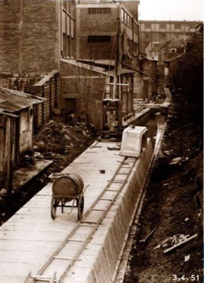 La Bièvre est une rivière de 36 km qui traverse 5 départements et 16 communes d’Ile-de-France. Elle se jetait dans la Seine jusqu’en 1896, au moment des travaux d’Haussmann et de Belgrand, où elle a été déviée jusqu’aux réseaux d’assainissement. Considérée comme un égout à ciel ouvert et polluée par les industries, une pétition publique a entraîné sa couverture totale à Paris en 1912. Dans le Val-de-Marne, la Bièvre a été canalisée et recouverte progressivement après la deuxième guerre mondiale jusqu’en 1956, pour des raisons de santé publique.