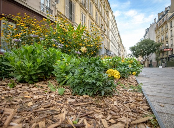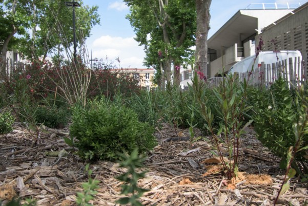 En parallèle, la ville de Gennevilliers pose son propre paillage de BRF, à partir de ses déchets végétaux. La récupération des végétaux se fait principalement dans des écoles.