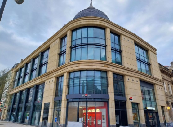 L’agence de la Société Générale située rue Serpenoise à Metz s’étend sur deux niveaux et présente trois façades orientées Ouest-Sud-Est, avec une forte exposition solaire.