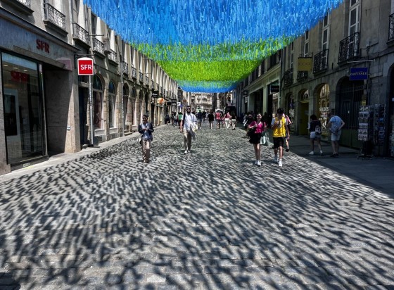 Simples voiles d’ombrage, ou solutions plus artistiques comme les fameux ciels de rue, l’ombrage de façade à façade peut prendre différentes formes et contribue généralement à promouvoir l’attractivité d’un quartier.