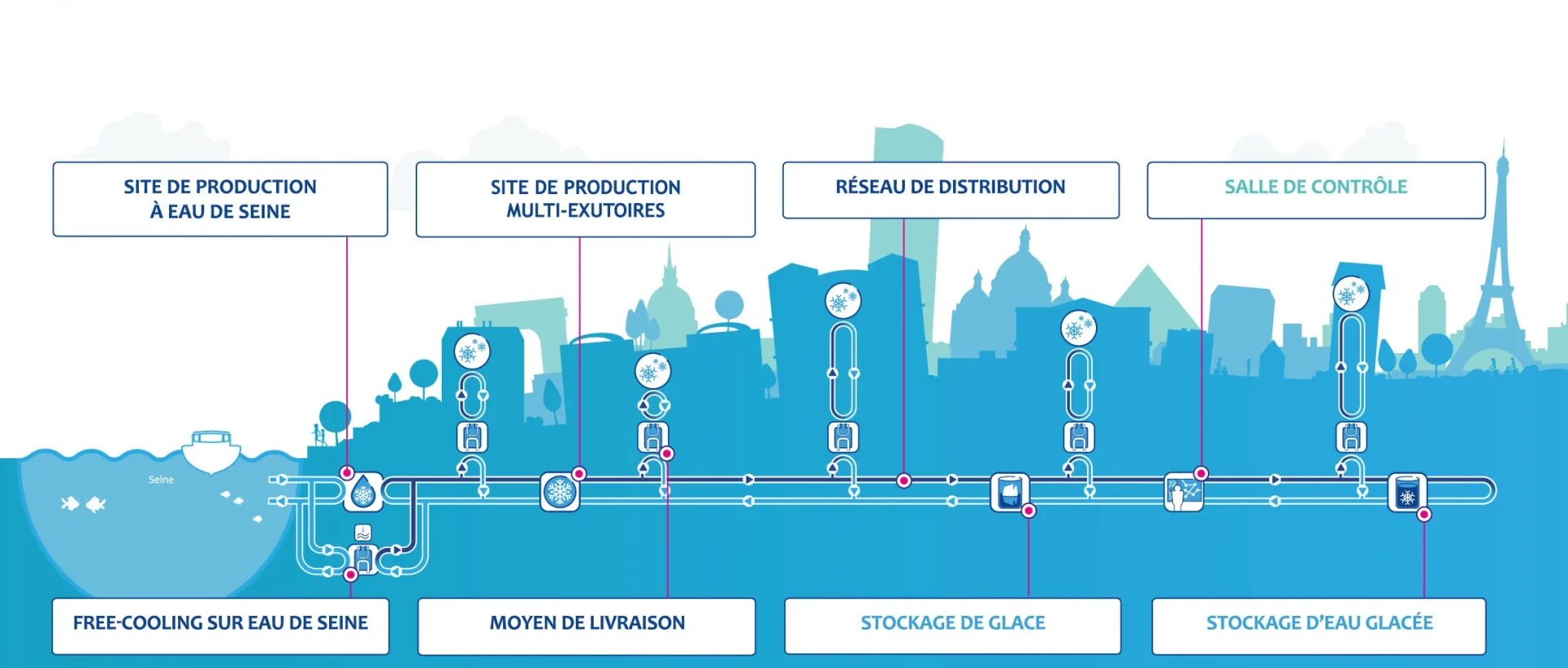 Exemple d'un réseau de froid urbain : le réseau parisien de Fraîcheur de Paris