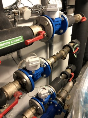 - Les capteurs équipés de débitmètre viennent mesurer le débit de l’eau qui s’écoule dans les tuyaux et retranscrit cette mesure de manière chiffrée. Des variations anormales de débit peuvent ainsi permettre d’indiquer une surconsommation ou une fuite.