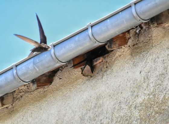 surfaces rugueuses, notamment sous des surplombs (avant-toits, balcons, rebords de fenêtres), afin de permettre l’implantation des nids d’hirondelles.